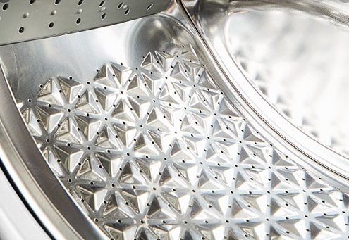 To improve washing quality and guarantee optimal protection for the most sensitive clothes, this washing machine has a snowflake drum cell design and its evacuation holes are smaller than a conventional drum, blocking the fibers of the fabric. to hang on the wall.