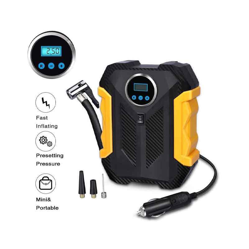La pompe portable est un pistolet pourvu d'un manomètre destiné à mettre les pneumatiques à pression. Ce compresseur d'air de pneu est constitué d'un arrêt automatique avec utilisation facile, un affichage led et un transport facile.