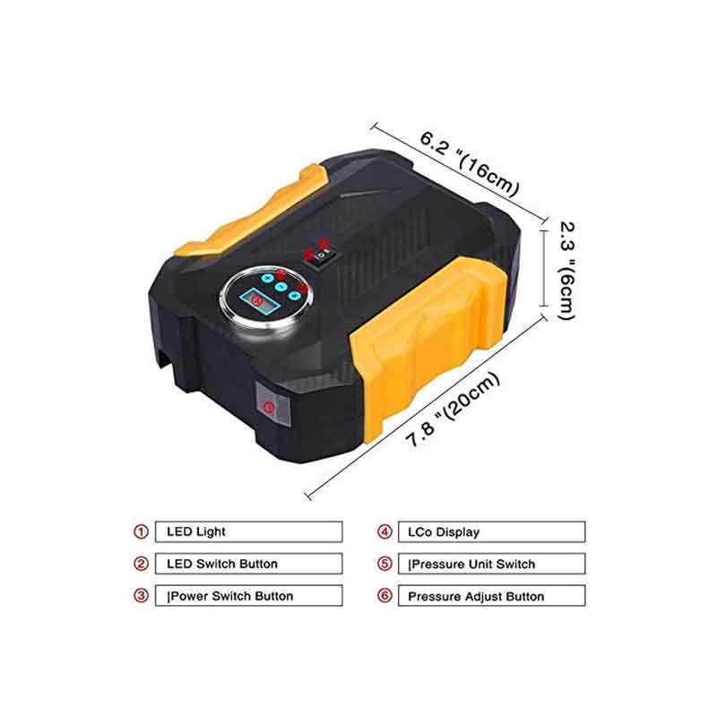 Le compresseur d'air portable a un emplacement de tube pour collecter, pas en désordre et peut également protéger le tuyau d'air. La conception compacte et légère du gonfleur de pneu prend peu de place et vous pouvez le garder dans votre coffre. Facile à transporter, utilisez-le à tout moment. Cet appareil est constitué des accessoires tels que : un sac de rangement, des buses d'air et des outils de reparations des pneus.