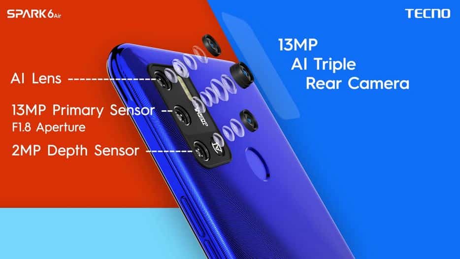 Objectif d'ouverture 13MP F / 1.8 + objectif de contrôle de profondeur 2MP + objectif AI + algorithmes AI nouvellement mis à niveau, une triple caméra AI plus puissante et multifonctionnelle a été lancée. Couvrant plus de scènes de prise de vue, et affinant les détails et la qualité de l'image entière, SPARK 6 AIR sur un nouveau voyage merveilleux avec vous et capture des moments plus mémorables. Le flash arrière Quad remplit automatiquement la lumière dans un environnement sombre, améliorant considérablement l'effet photo.