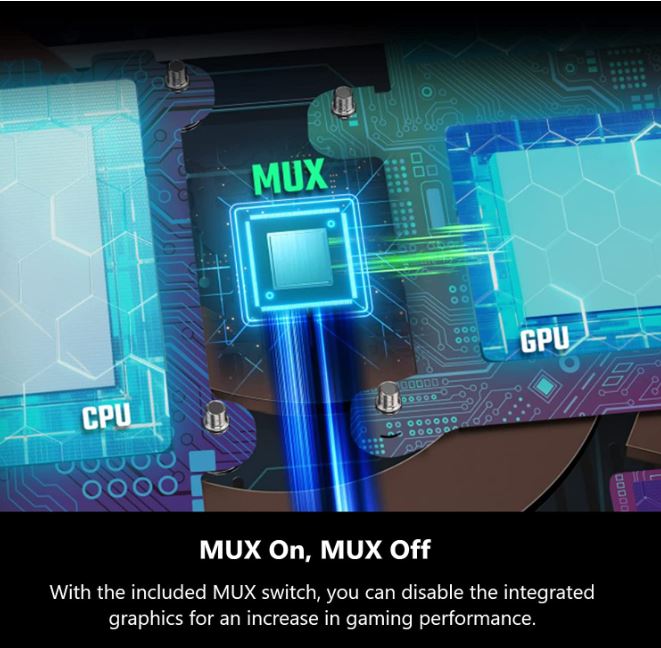 Le commutateur MUX inclus vous permet de désactiver les graphiques intégrés pour de meilleures performances de jeu.