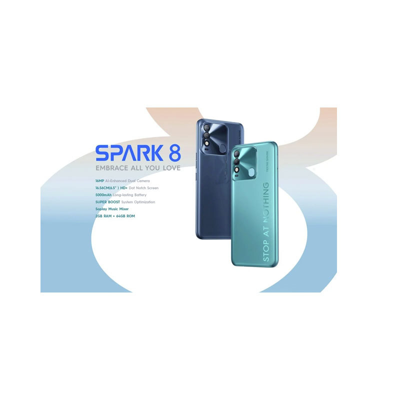 Si vous n'avez toujours pas eu l'occasion de profiter des performances des nouveaux modèles tecno, c'est une opportunité unique qui vous est donnée. Le smartphone Tecno Spark 8 à bas prix vient vous propulser au-devant de la scène. Il vous offre des performances comme nulle autre et vous fait découvrir les rouages de l'avancement téléphonique dont vous ne vous en doutez même pas. Le téléphone android Tecno Spark 8 met à votre disposition des met atouts de pointe avec un écran de 6.52 pouces pour une vision claire et un appareil photo de 16MP/8MP pour des photos exceptionnelles. Il est également muni d'une capacité interne de 64Go, avec une ram de 2Go, sans oublier sa batterie de 5000mAh d'une autonomie suffisante.